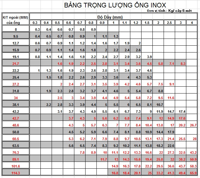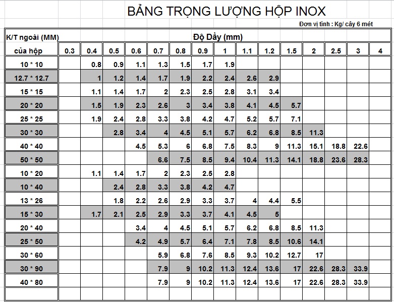 Stainless Steel Mass Table ( Bảng tra khối lượng Inox ) Stainless Steel Mass Table ( Bảng tra khối lượng Inox ) 23/02/2020 10:11 | : 4957 Stainless Steel Mass Table#Bảng tra khối lượng Inox Danh sách tin tức Code bearing ( Mã bạc đạn )Stainless Steel Mass Table ( Bảng tra khối lượng Inox ) Sản phẩm Dụng Cụ Cắt GọtMũi doaMũi khoan bê tôngMũi khoanVật liệuLinh kiện tự động hóaKhí nén - Thủy lựcĐộng cơ bướcPLCĐộng cơ ServoLinear RobotElectric Motor CylinderChế tạo máyGia công kim loại tấmMáy tự độngGia công cơ khí chính xácLinh kiện siếtLục giác chìmMillingLatheCNC MillingCNC LatheBulong Sản phẩm đặt biệt Không có sản phẩm thuộc chủ đề này Tin tức Code bearing ( Mã bạc đạn ) Stainless Steel Mass Table ( Bảng tra khối lượng Inox ) Mở rộng 3 Mở rộng 4